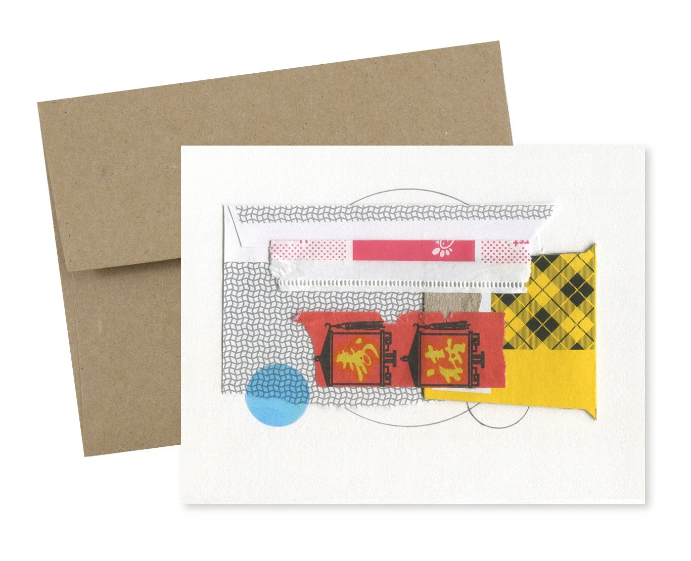 My collage art is made using found objects and ephemera. Cardboard from a case of cat food or beer. Trash discovered in a parking lot. Preselected colors from completed paint-by-numbers kits. There is no master plan. What gets used is left to chance. It arrives via mail, traveling, and whatever I stumble upon living my life each day.